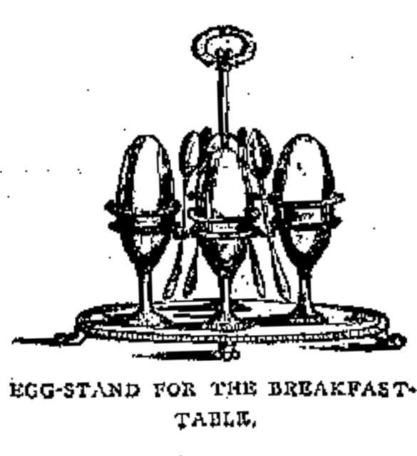 Note.-- Silver or plated egg-dishes, like that shown in our engraving, are now very much used. The price of the one illustrated is £2. 2s., and may be purchased of Messrs. R. & J. Slack, 336, Strand.